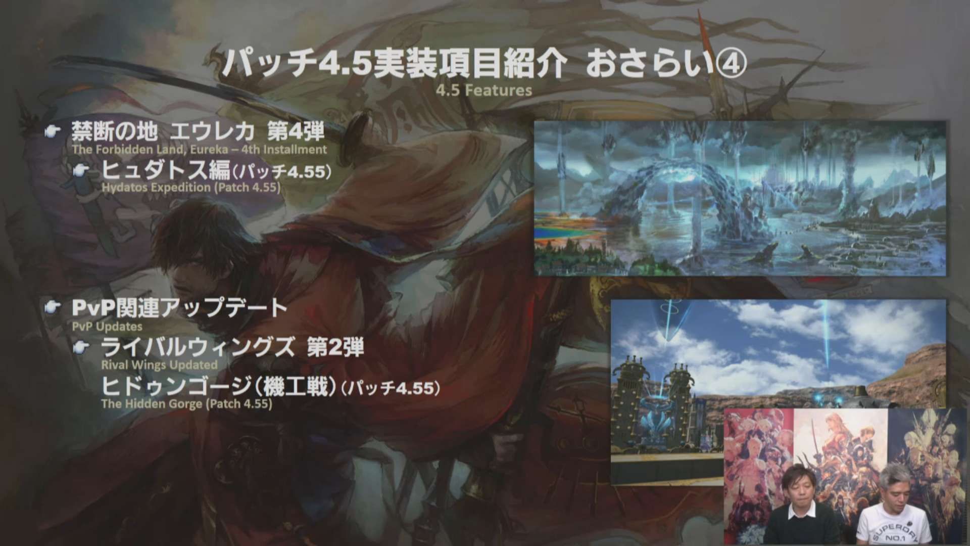 We’ll also get the 4th installment of The Forbidden Land, Eureka with the Hydatos Expedition in 4.55, a PvP update to Rival Wings and The Hidden Gorge in 4.55.