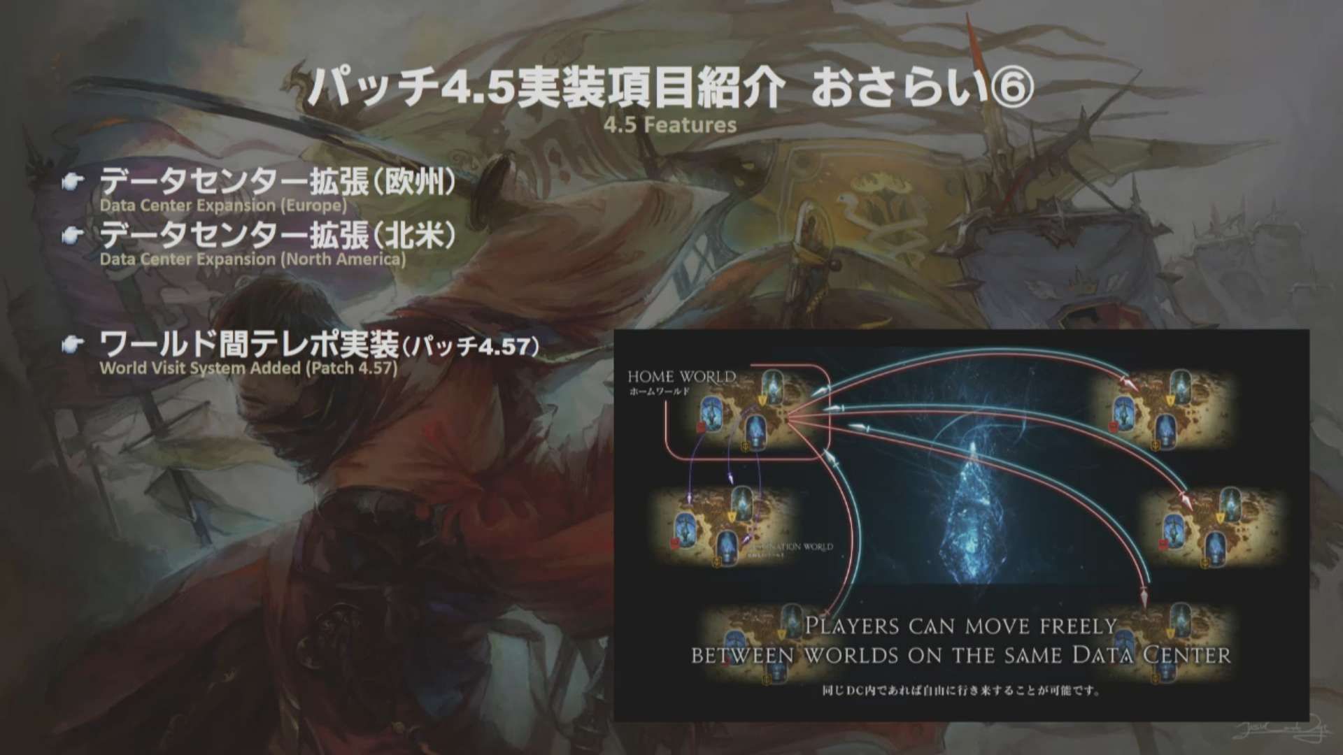The data centers will be expanded in both North America and Europe, and the World Visit system will allow players to visit other servers in the same datacenter with patch 4.57. This will come after Part 2, and timing will be announced at a later date