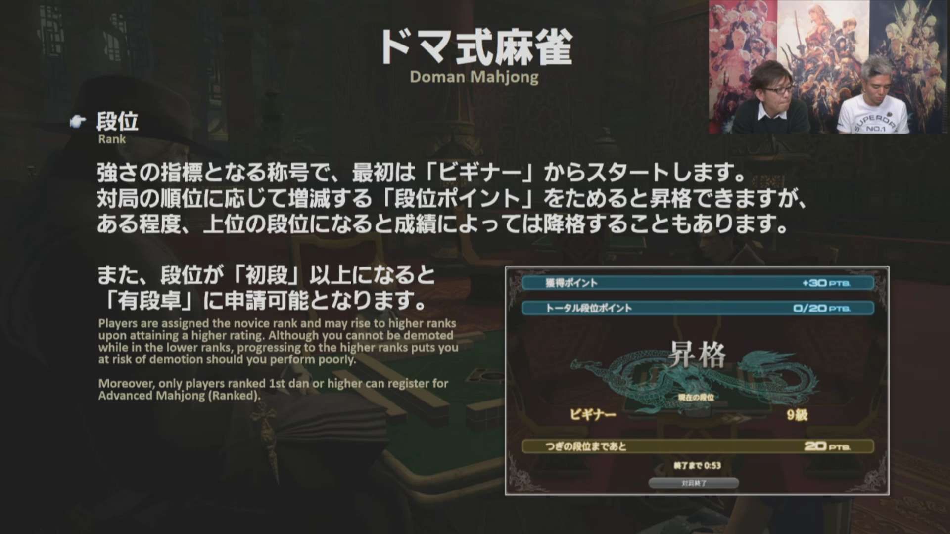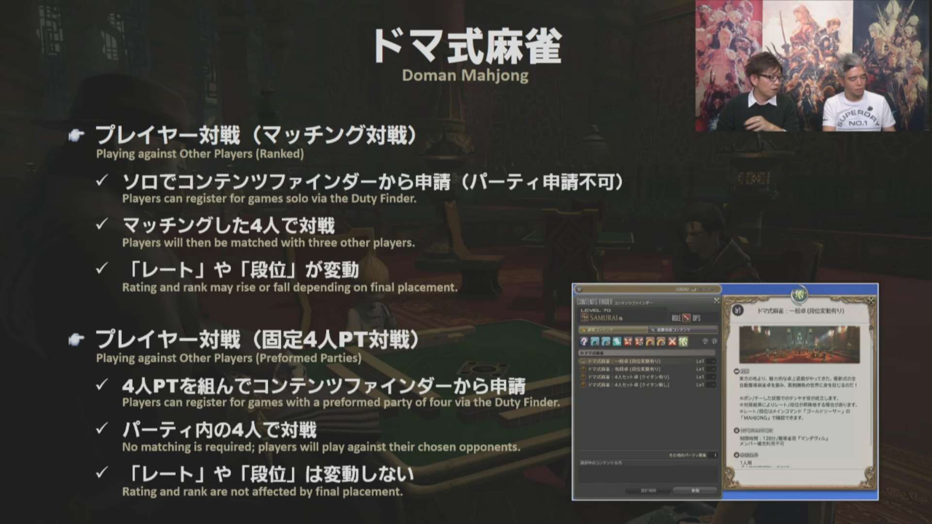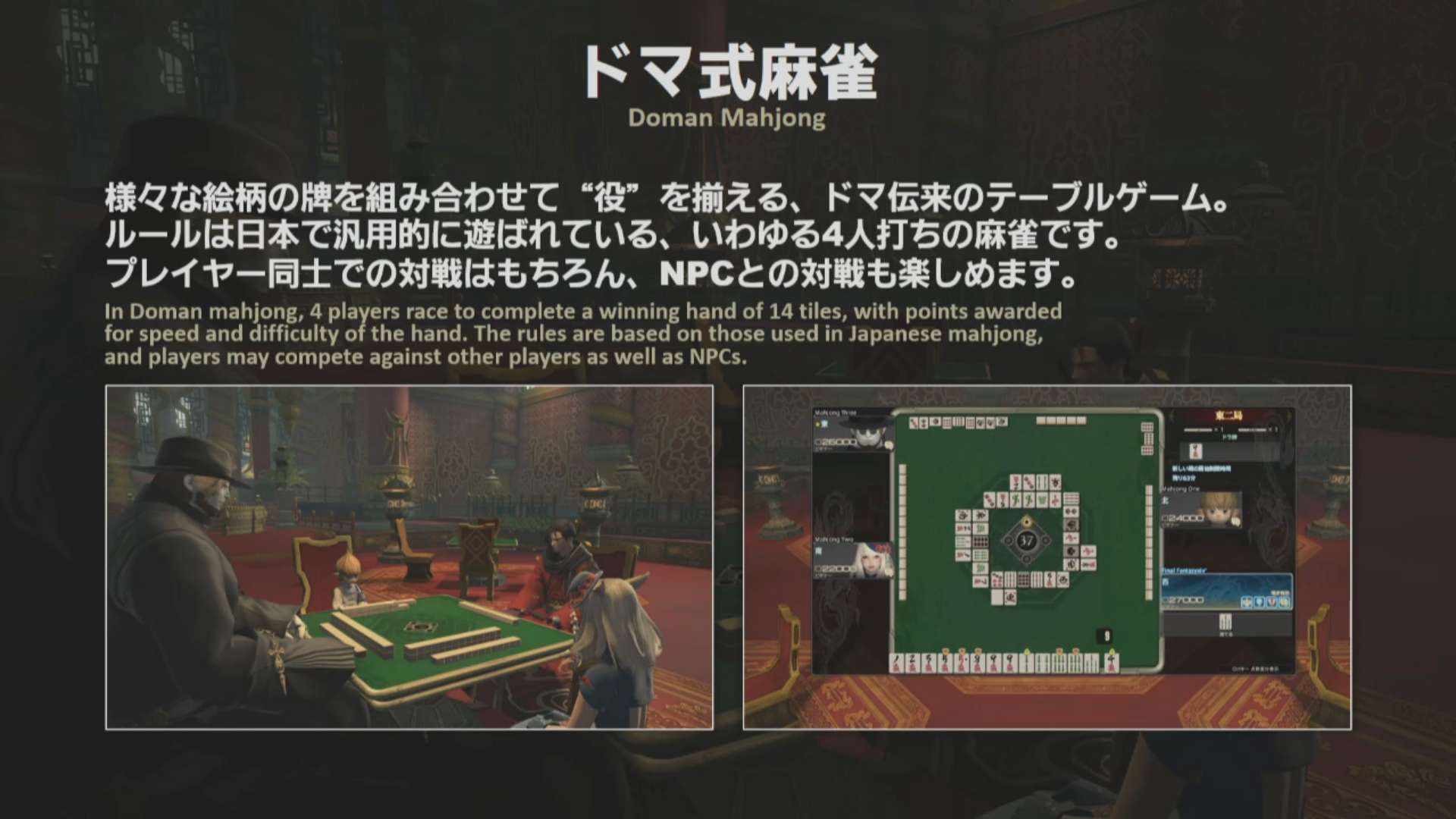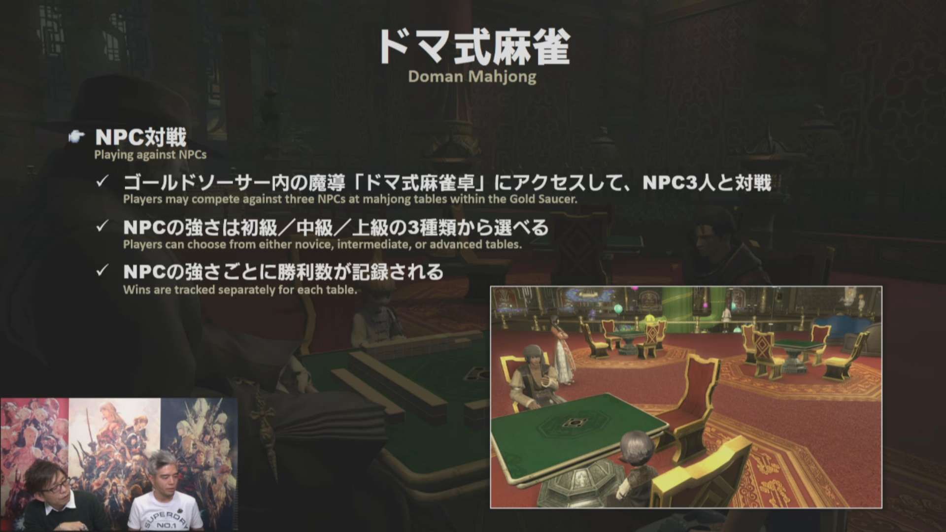 Funnily, the Final Fantasy XIV development team will host a livestream on December 23rd at 2:00 PM Japan time during which they will play Mahjong and explain the rules.