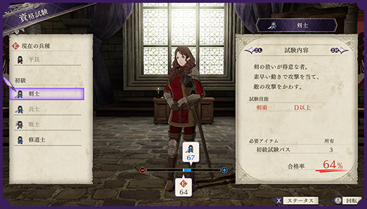 One of the roles of the player is to support each student’s growth while identifying their talents. The qualification exams require different skills depending on the target class, and the skills learned are directly linked to the score.