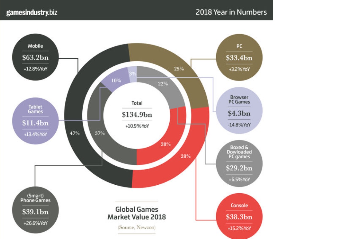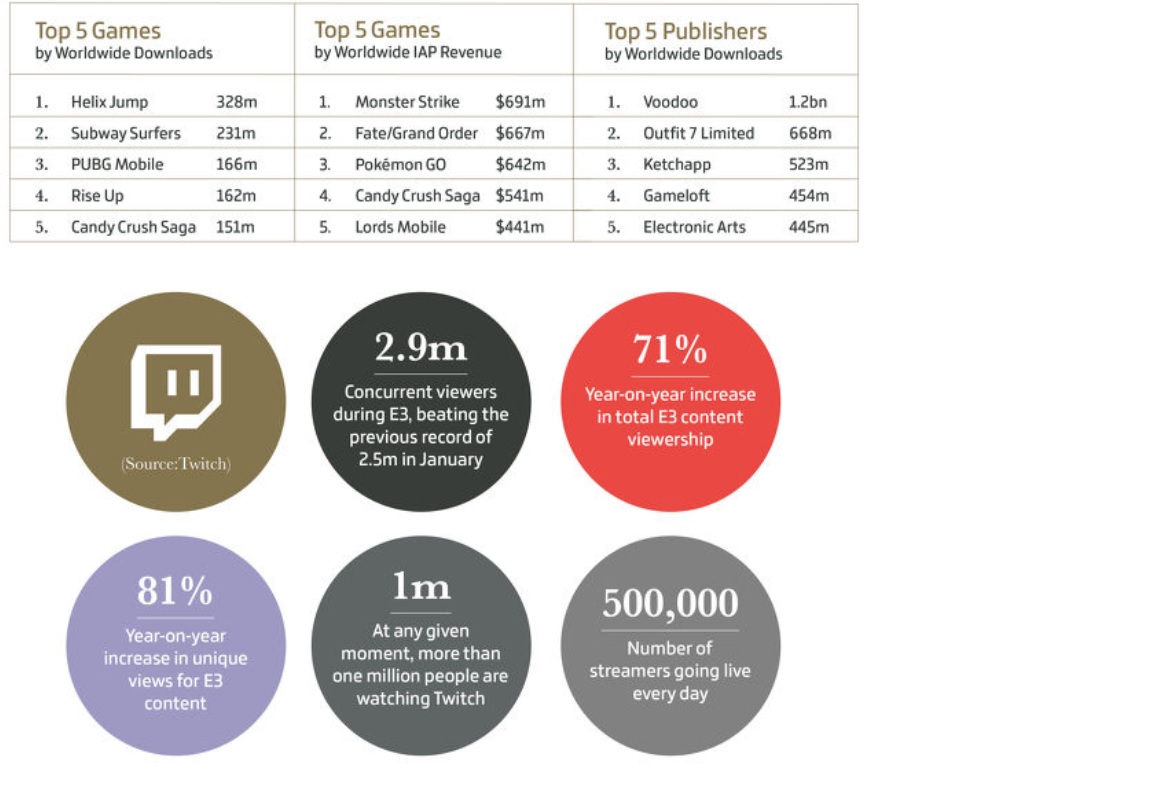 The report draws on information compiled by a number of different partners, including market research firm Newzoo, UK tracking agency Chart-Track, as well as IHS Marki, ICO Partners, Apptopia, and Fancensus.