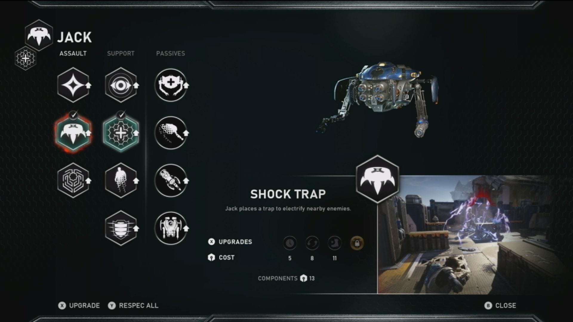 - One of the elements that embodies player choice is Jack. He provides RPG elements to the game to change up combat. He can cloak you, heal you, drop proximity traps and more. He has seven combat abilities and four passive abilities. You unlock them through the campaign and you can also find components to install. Below you can see his menu.