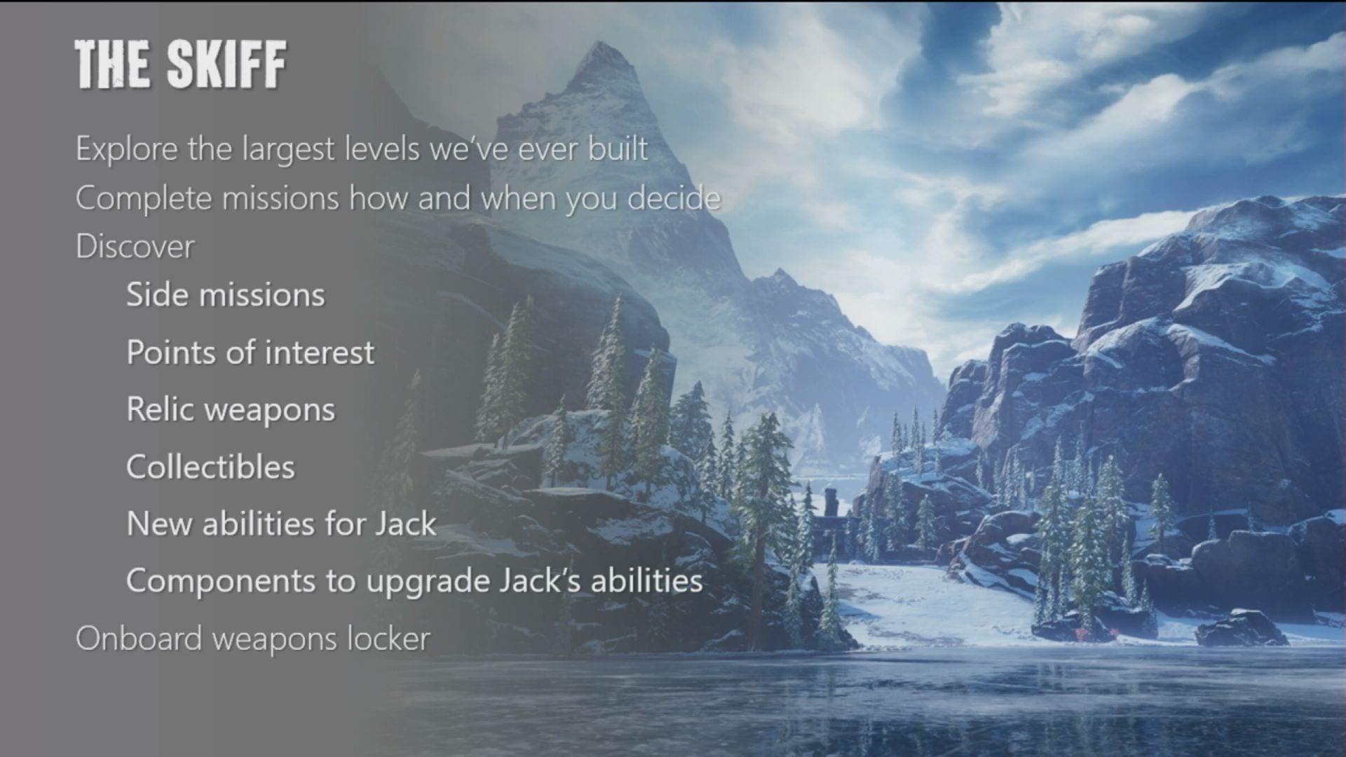 - The other side of the player choice equation is the Skiff. It’s meant to give players control on the pace, and whether they want to engage in combat or explore at any given time.