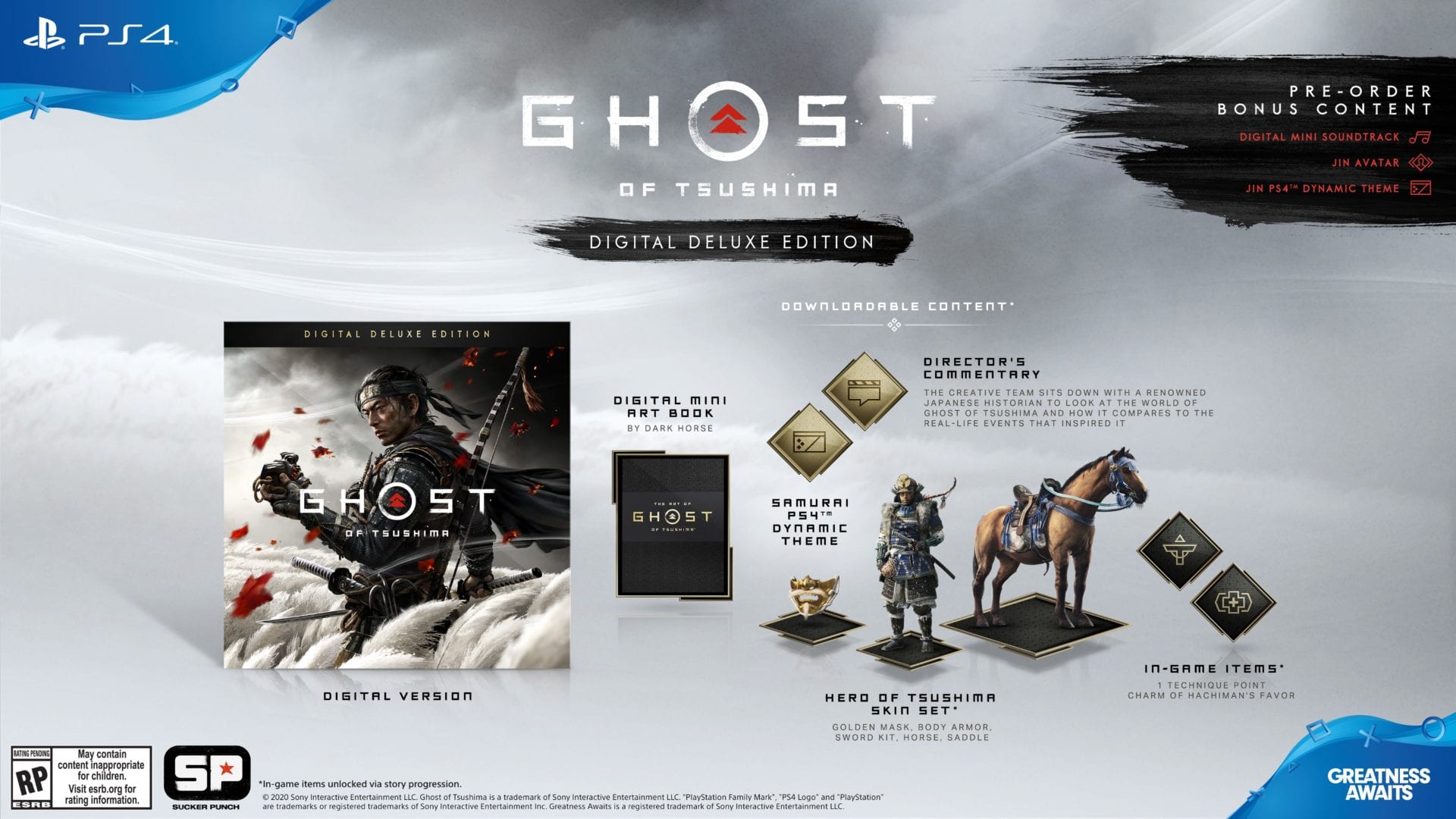 “The first is our Special Edition, which includes a SteelBook case plus a voucher for an in-game Hero of Tsushima mask and sword skin, Charm of Hachiman’s Favor, one technique point, the Director’s Commentary, and the digital mini art book.”