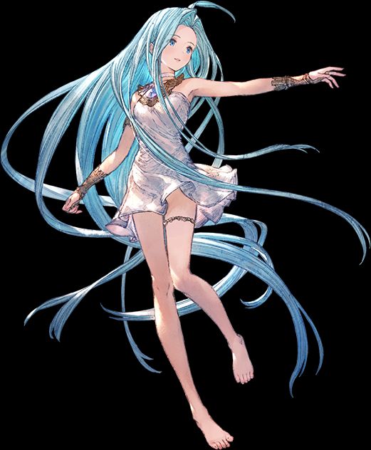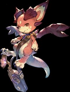 An Erune girl who once resided on the Mist-Shrouded Isle. She became a spirit at the moment of her death. This grim transformation occurred while she was waiting for her frail sister to return home, a period that had lasted well past her death. At Gran and Lyria’s behest, she sets out on a journey to discover the whereabouts of her now-grown sibling. In addition to the crack of her whip, she fights with the faithful bite of her ghostly pets, overwhelming her opponents with phantasmagoric assaults.