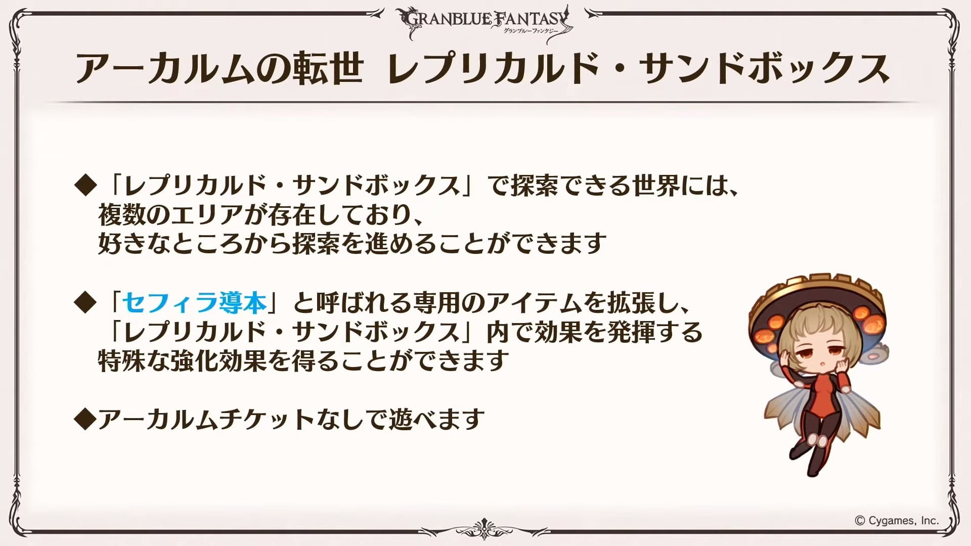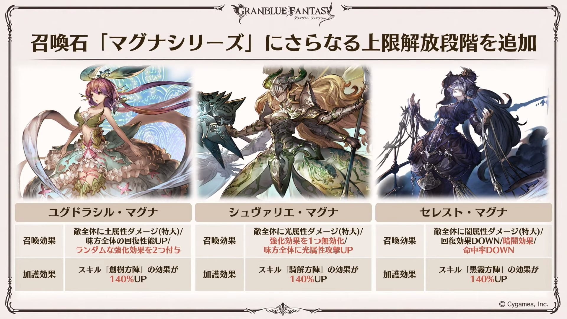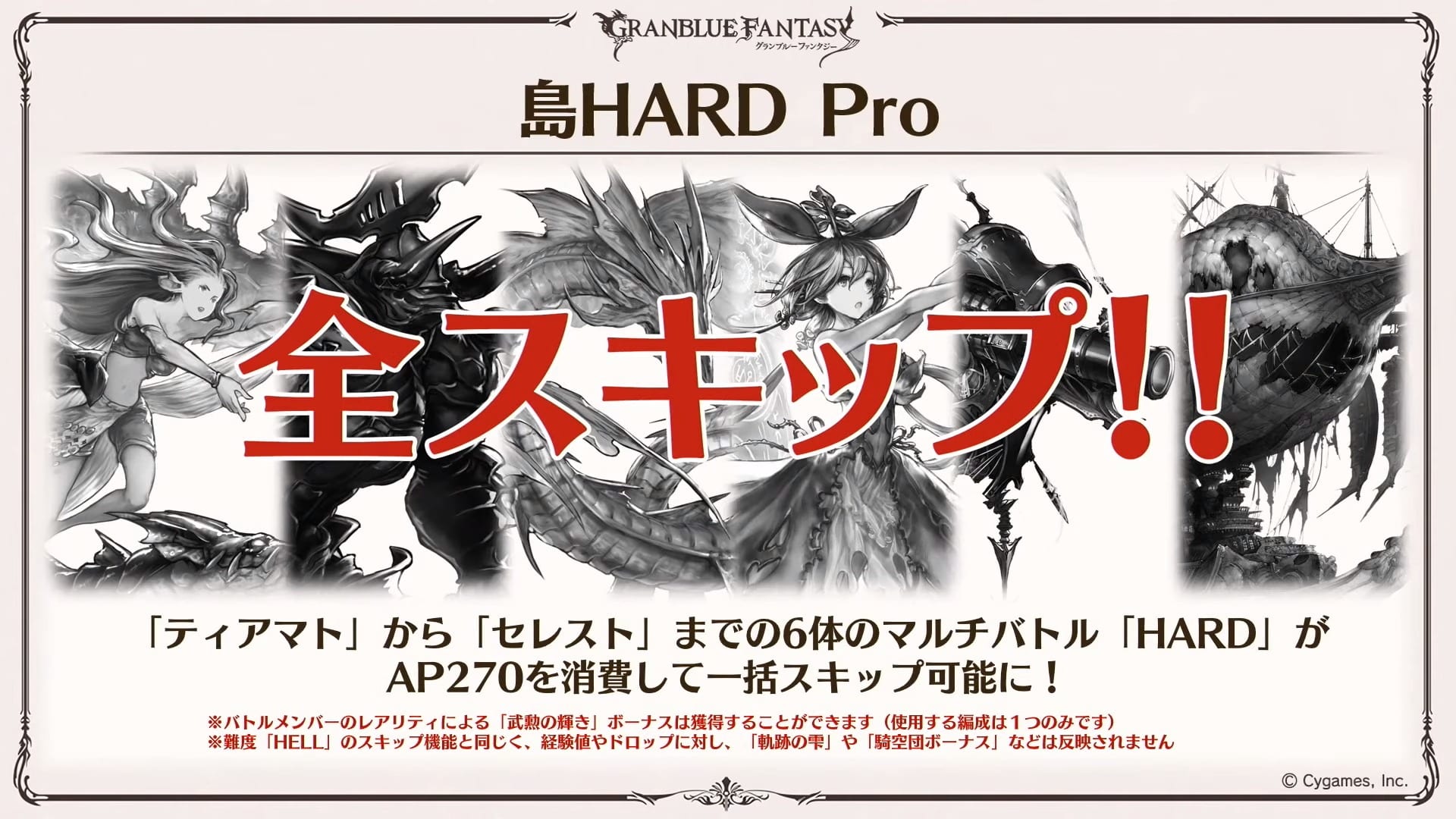 A Special Skin Gacha will be added for 200 crystals per draw or 2000 per 10 draws. It’ll include “Mirage Style” that will let Gram and Djeeta change to another character, new colors for classes, and various special skins that you can see in the gallery.