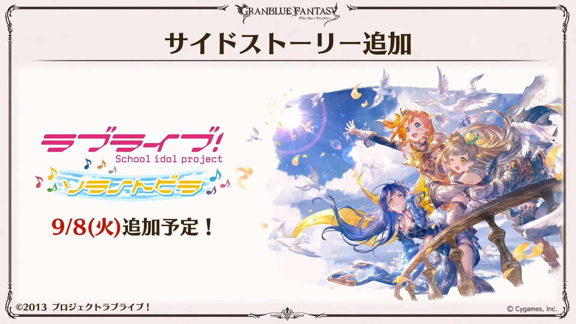 As usual, we get some collaboration announcements: the Love Live event will become a side story on September 8, and in the same month we also get a collaboration with the Shadowverse anime. Another crossover will come in December but no further information was provided on its nature.