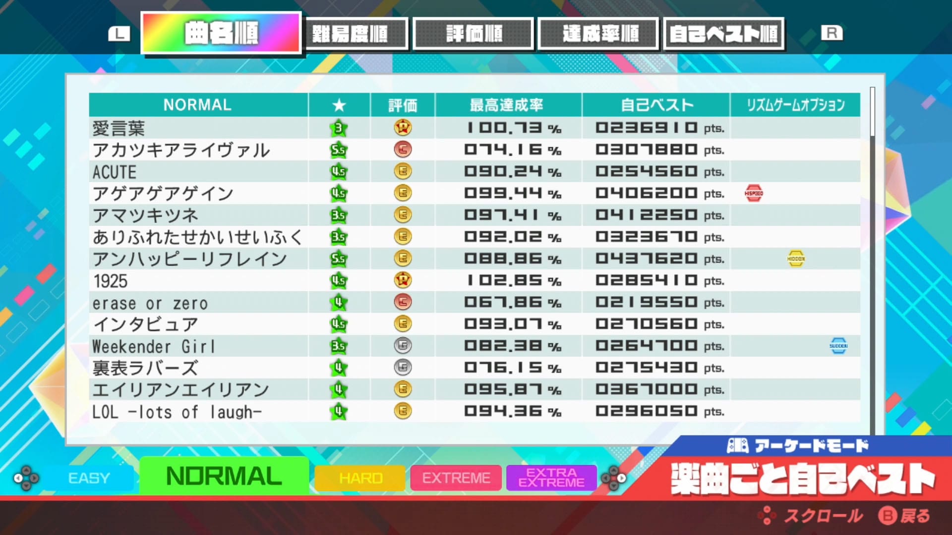 The Gallery mode is a lot less self-explanatory, as it lets you take a look at your stats including your best performance scores for each song, your success rates and clear options for every difficulty level.
