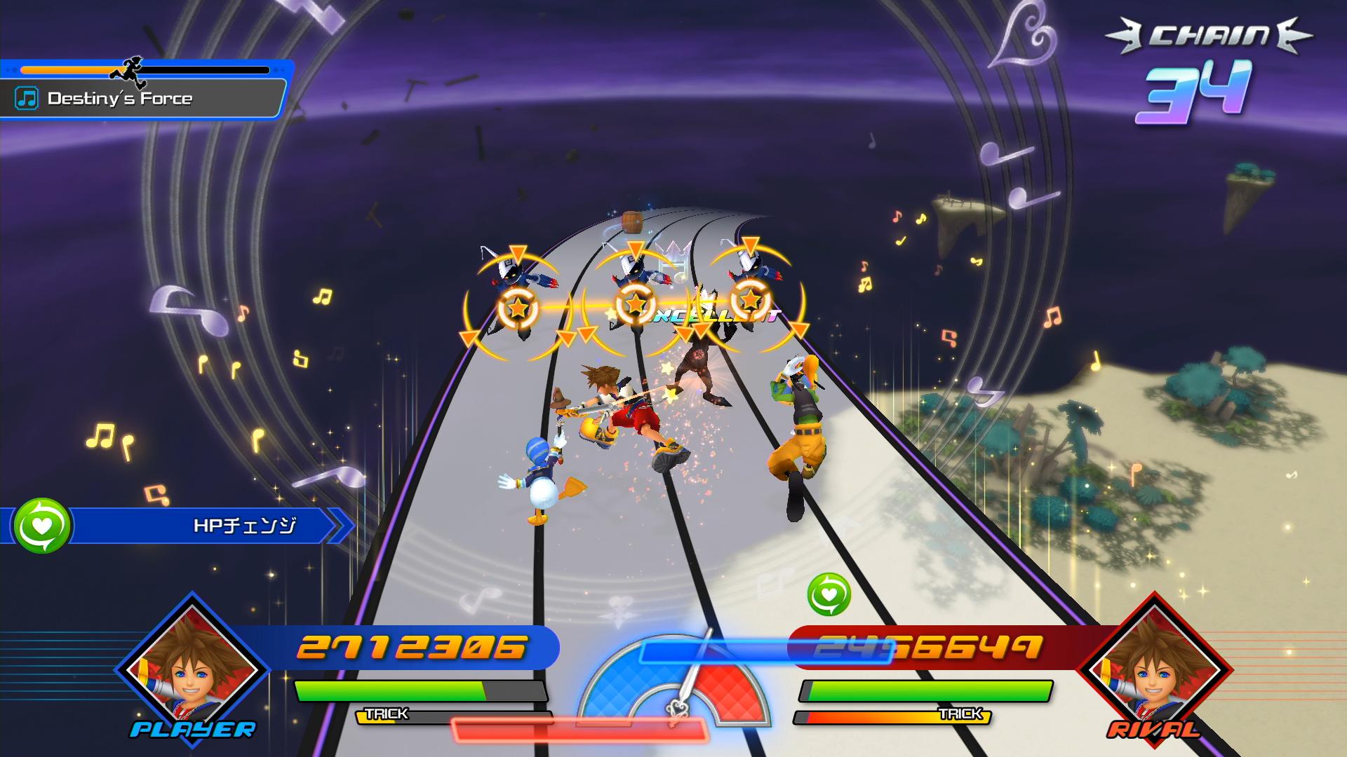 As for modes, one lets you travel between worlds with the Gummi Ship and discover both music levels and story scenes. There are three difficulty levels and songs unlocked this way can then be individually played in the Music Select mode. Past story cutscenes can be viewed at any time in the museum.