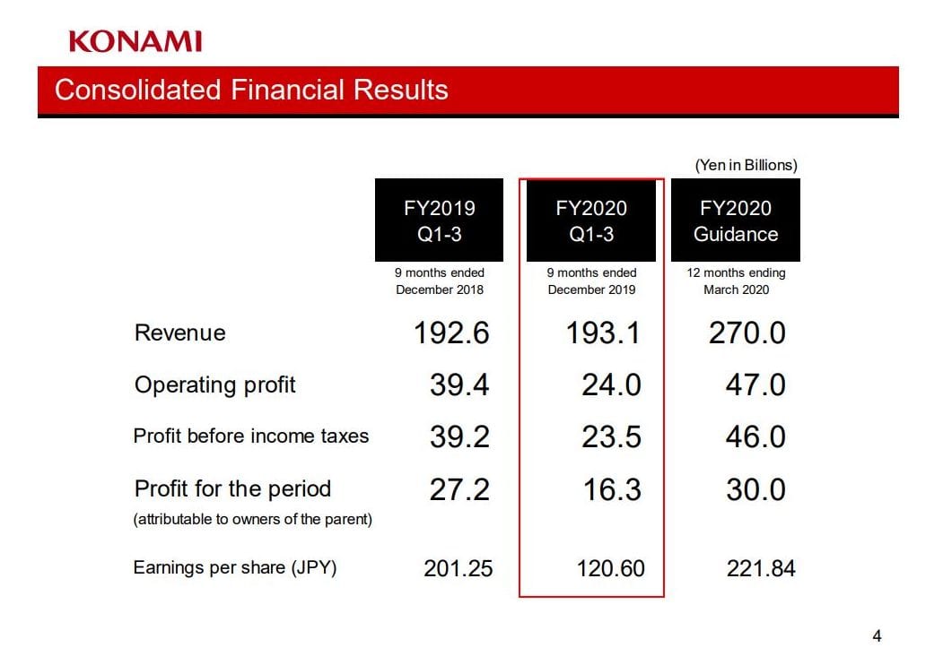 Today Konami revealed its financial results for the third quarter of the fiscal year 2020, related to the period ended on December 31, 2019.