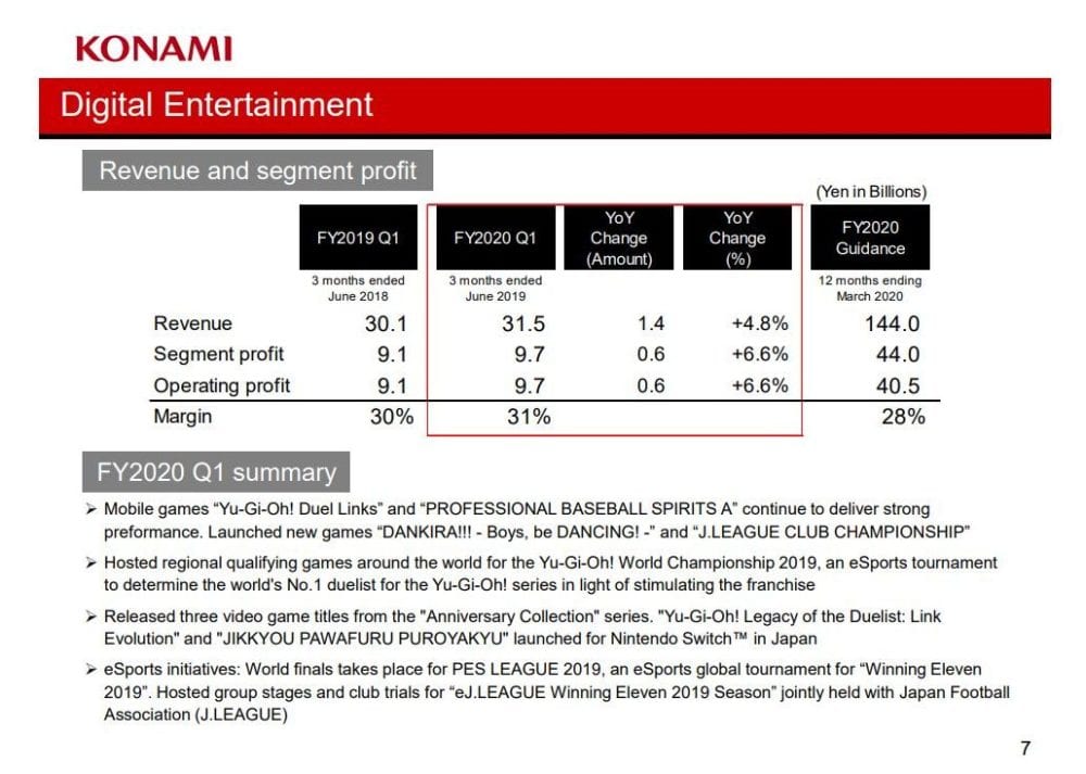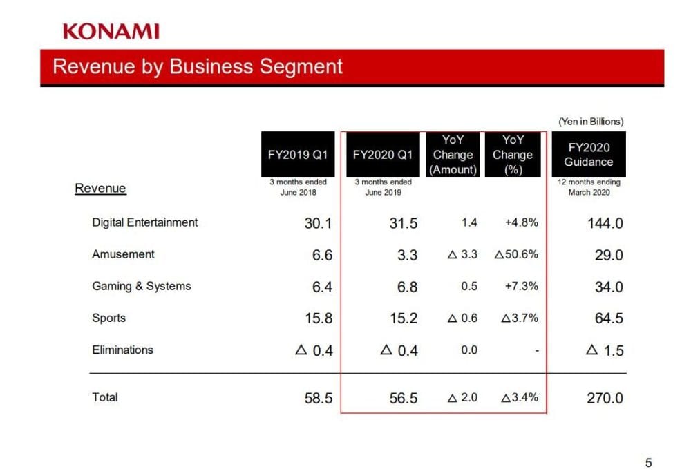 Today Konami revealed its financial results for the first quarter of the fiscal year 2020, related to the period between April 1 and June 30, 2019.