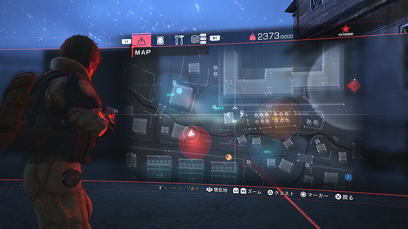 In Left Alive the player is supported by an AI name Koshka, and the destination of each level is displayed on a map at all times. It also includes useful information to determine the route you want to follow. Since there is never only a single route to the goal, it’s up to the player to decide whether they want to follow the shortest route, a safer but longer one, or explore the whole map to gather as many materials as possible.