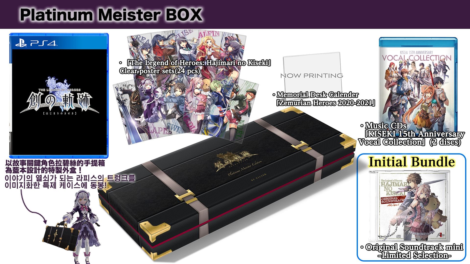 We also get the release of the Platinum Meister Box special edition whioch will include a set of 24 clear posters, a desk calendar, and 2 music CDs. A mini soundtrack will also be provided as early purchase bonus.