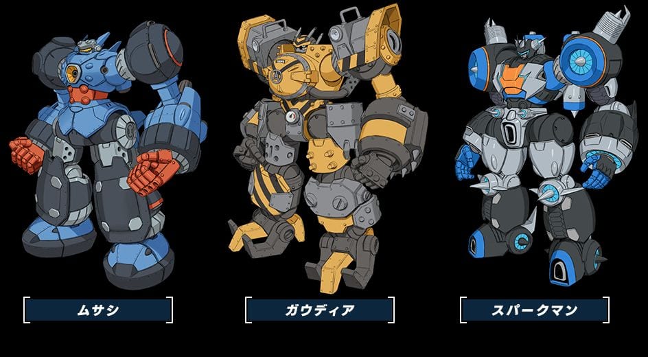 Three robots have already been revealed, Musashi itself, Gaudia, and Sparkman. Another that has the classic form of a  mecha-centaur has been teased, and five more should be revealed at a later time. Yet, you can combine their parts freely to create your own mecha.