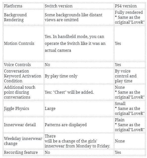 LoveR Kiss Details PS4 vs Nintendo Switch Differences and Exclusive Content