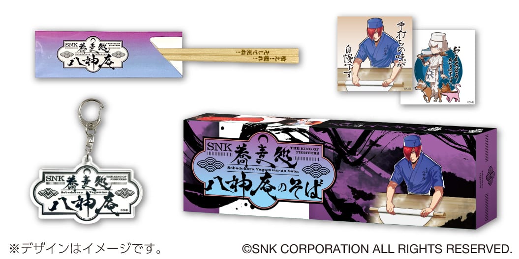 Among the products for sale you’ll find T-shirts, a fan, a B2 poster, Japanese New Year decorations (Kagami Mochi and Kadomatsu), tin pins, a muffler, acrylic stands, stickers, keychains, canvas art, and two sets of soba noodles themed after Yori Yagami.