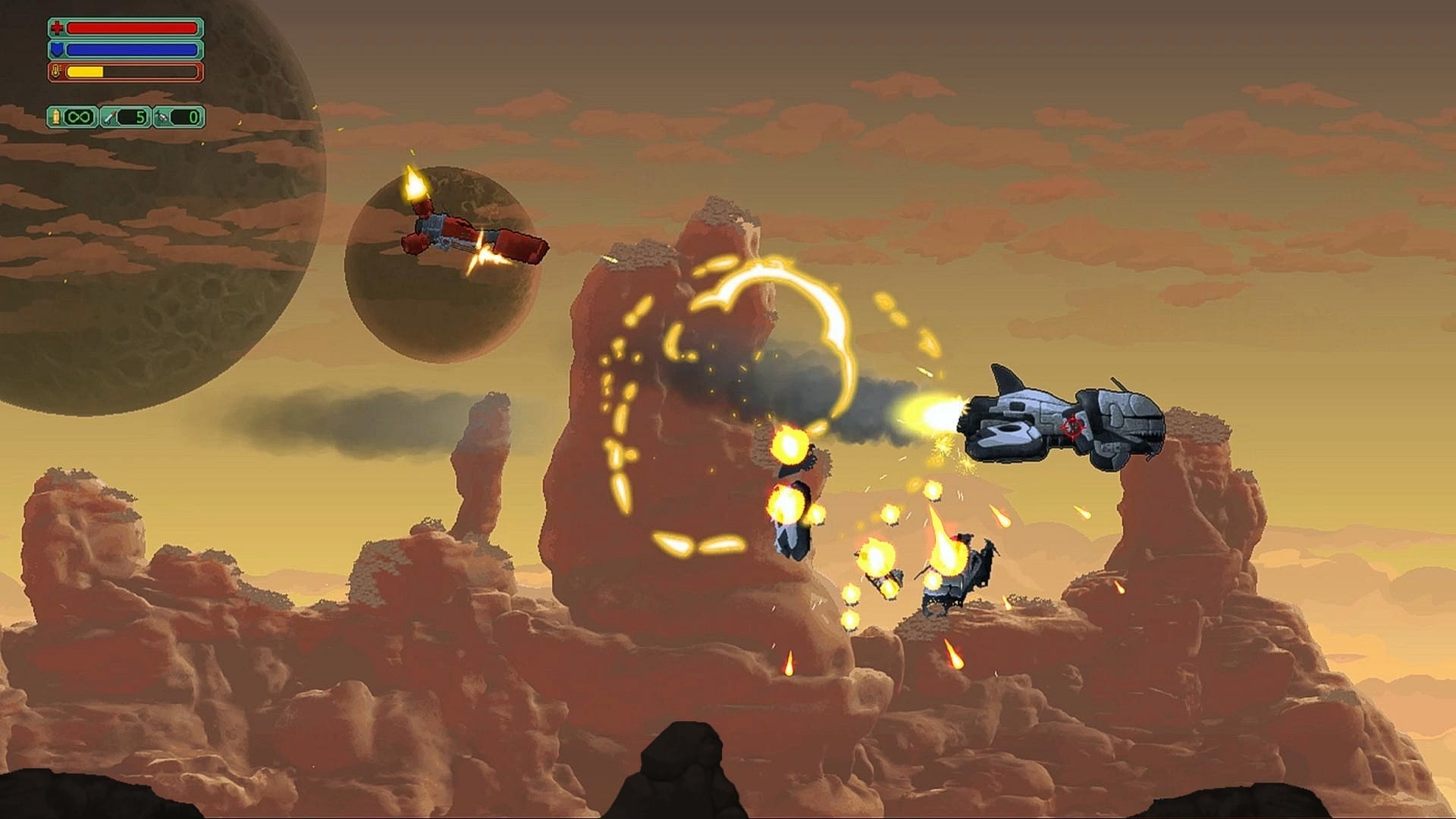 Metal Fury 3000 will mix furious shootings, brutal fights, awesome pixel art, real physics, destructible environments, dismembering enemies, a lot of secrets to find, absurdly devastating weapons to use, an amazing Heavy Metal soundtrack (that will split your eardrums) and much more.”