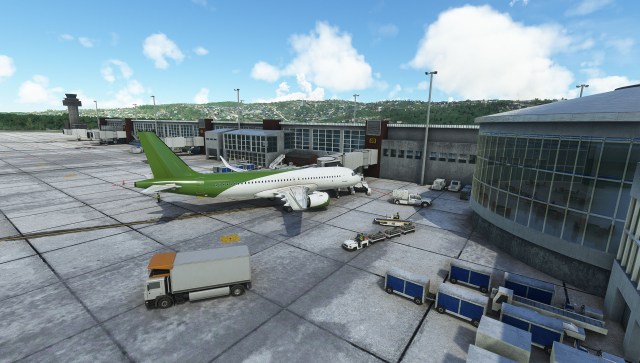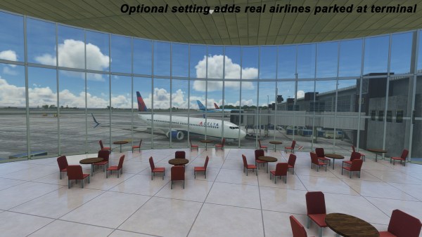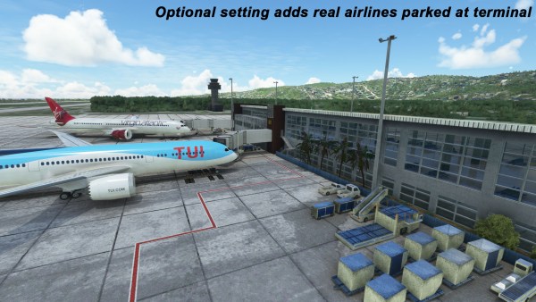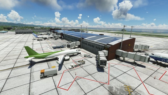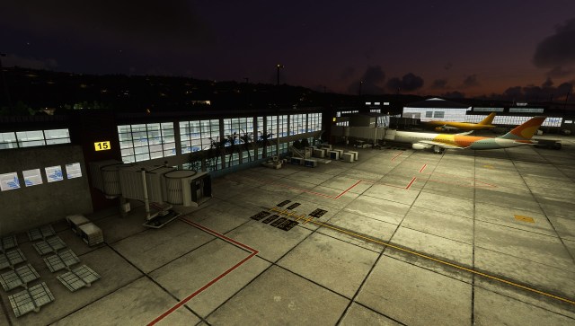 - Detailed airport terminal, hangars, and buildings, complete with PBR textures and night lighting.