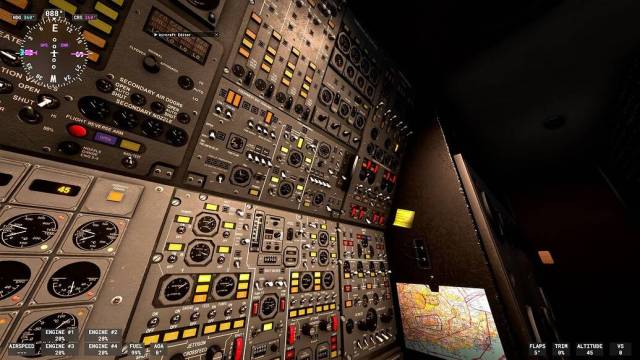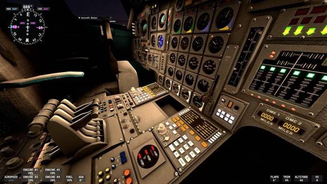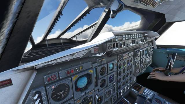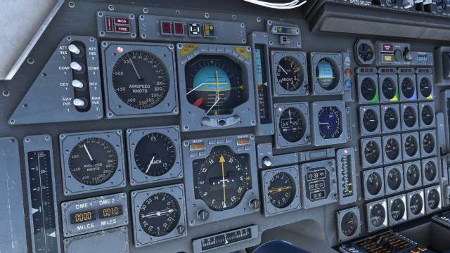 - 3D modelled dials, ADI, ‘whiskey’ compass and other high-detail instruments designed to emulate the appearance of the real Concorde