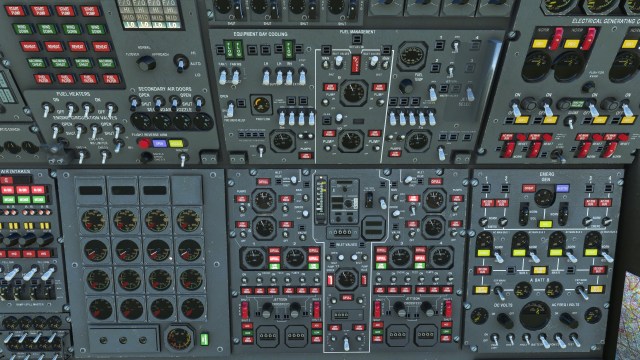After the epic work done by CodenameJack on the fuel system, it has then been my (ongoing) job to work through the whole thing on the engineer’s panel, making sure that all the annunciator lights and circuit MI’s work as they’re supposed to. Jack’s work is so accurate that I have been able to do this with reference to the real Concorde, and the same process is now being applied to the electrical and hydraulic panels. Concorde had three hydraulic systems for redundancy purposes, but I’m not sure if all three will be made operational at this stage ( although all controls will be available for that purpose ). Fuel transfer is now done in an identical manner to the real Concorde, balancing the center of gravity via the correct trim transfer tanks. So far, the model has more than 10,000 lines of code to handle all of this, with many more to come.