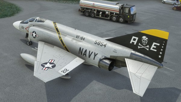 Next comes DC Designs with another look at its F-4 Phantom. The developer is in the process of placing all the decals (including panel lines and rivets) which is very work-intensive and is taking some time. Animation work will begin next week.