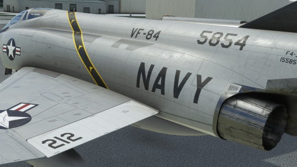 Cockpit modeling is underway alongside PBR textures (the ones you’ll see below are placeholders). The sound pack will be created by Sim Acoustics, initially including the J-79 turbojet engines. The Rolls Royce Spey engines will be added after launch.