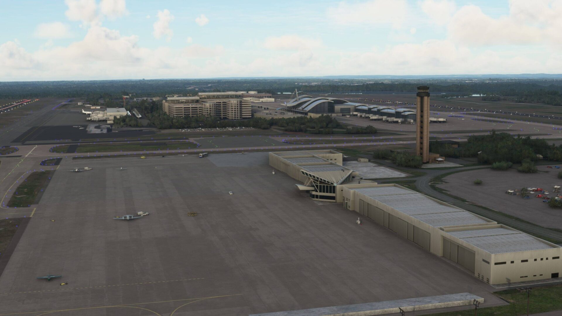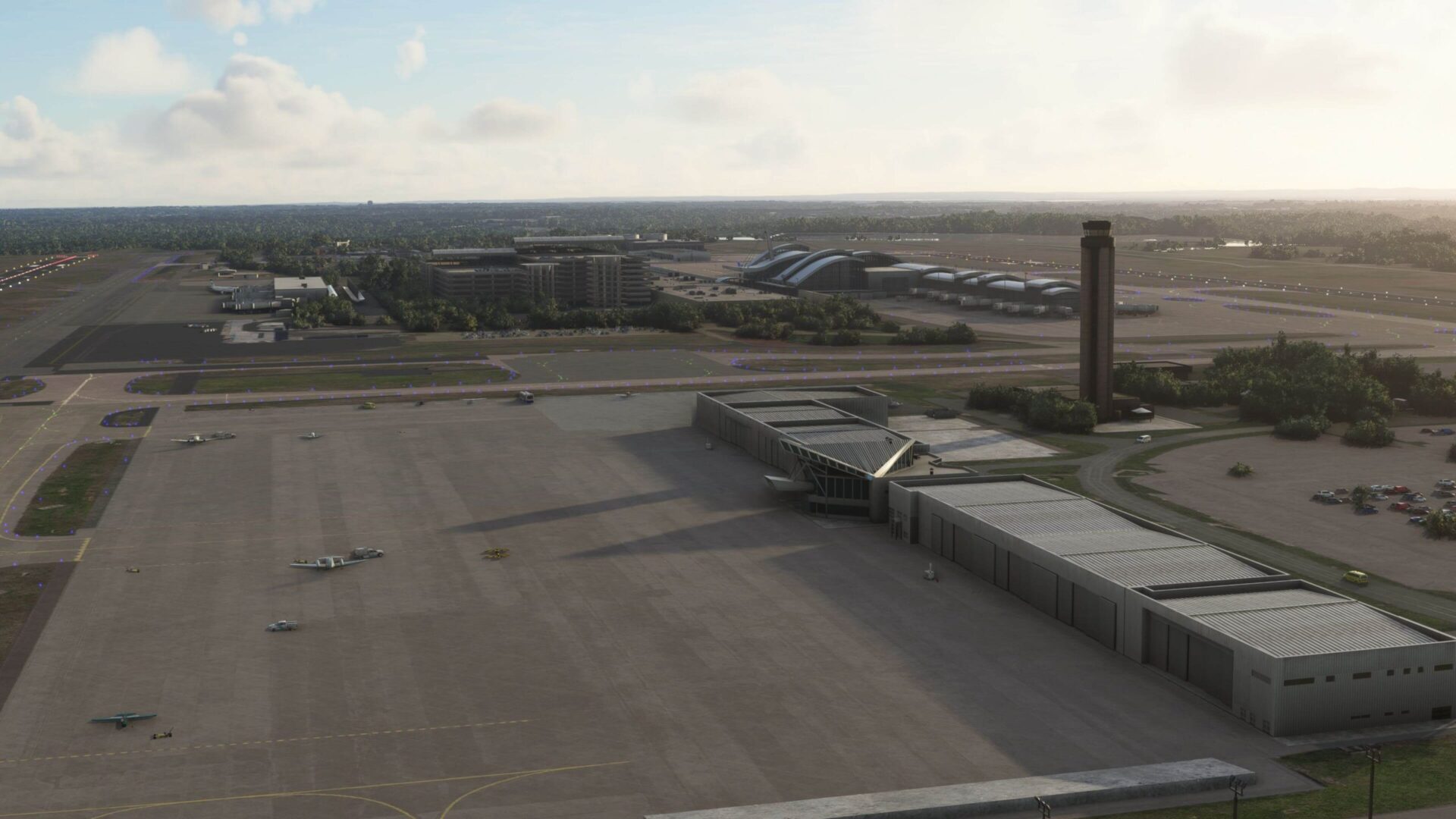 - Detailed modelling of 100+ hangars and buildings