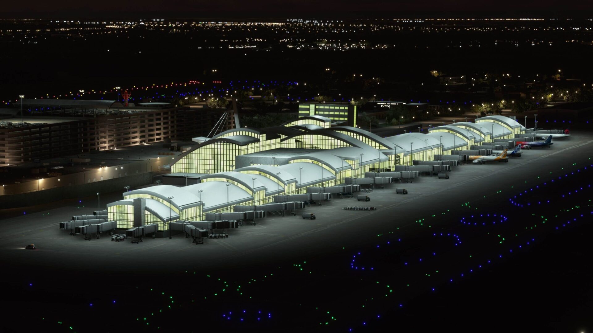 - Complete night lighting environment for the entire airport area