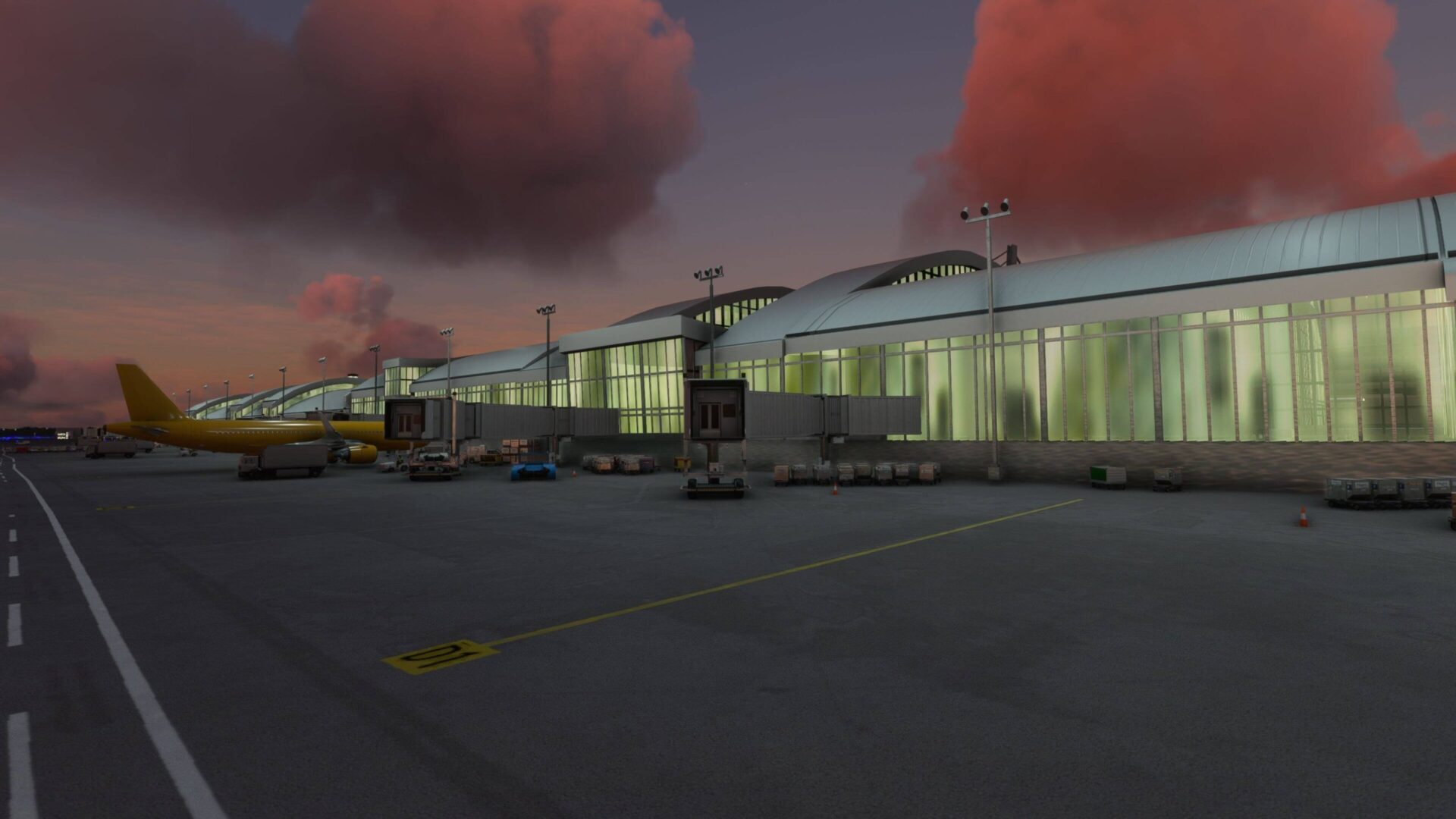 “Sevelopment work is pretty much complete on this wonderful airport. Other than final changes, bug fixes and optimizing it’s all there now. We believe our scenery is one of the most detailed out there to date. From moving escalators and elevators with opening doors, to individually modelled ceiling lights in the terminals and waving flags. We’re confident this will all help to create the feeling of a living airport instead of simply static scenery.