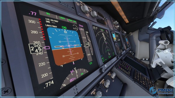 - PMDG’s customized, flight model with enhanced physics augmentation.