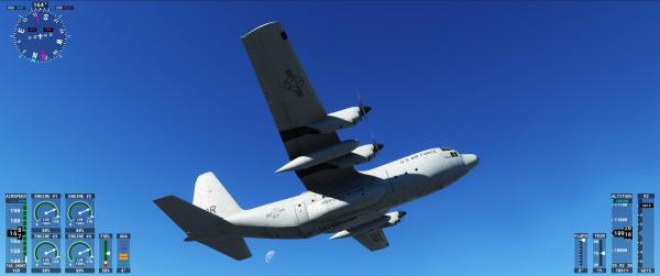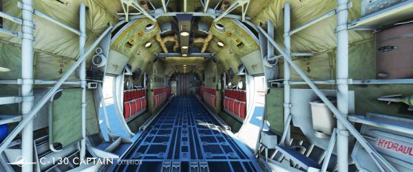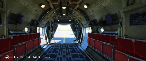 The developer launched a “C-130 Exterior” and as the name implies, it only includes the exterior of the aircraft, with absolutely no flight deck. Basically, you would be forced to fly it with the stock hud, which greatly reduces any simulation value it may have.
