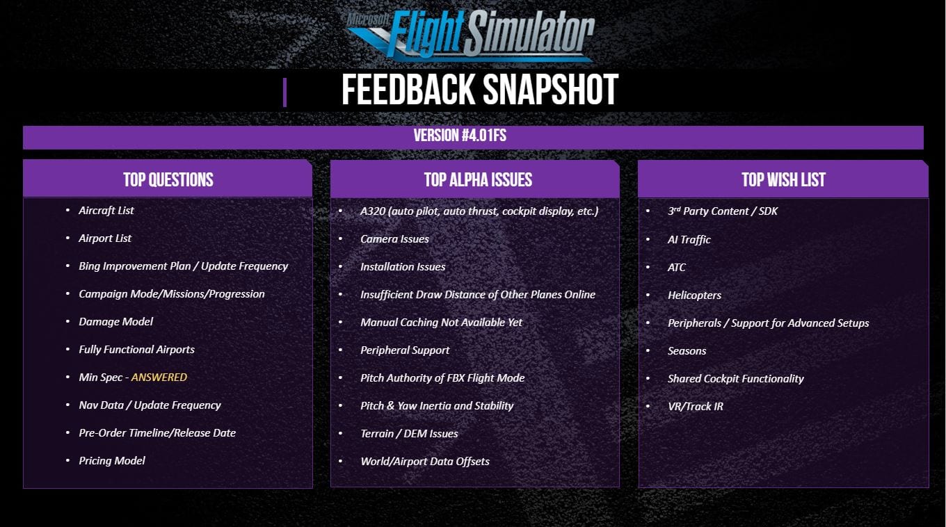 The feedback snapshot mentioned above provides a look at what alpha testers have identified as the top issues so far, and as their most-wished features.