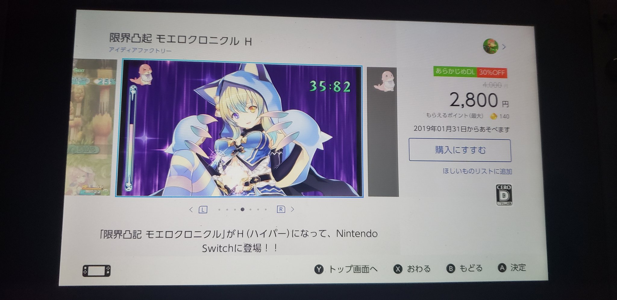 Update: Twitter user DJK1NG_Gaming provided the following image from the Japanese Nintendo eShop that appears to indicate that the original Moero Chronicle game is indeed coming to Nintendo Switch for 4,000 yen discounted to 2,800 yen and launching on February 31st.