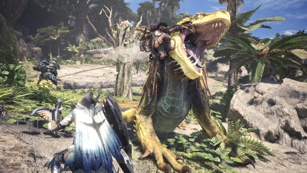As for features, we’ll be able to enjoy text and voice chat, a training area to test all the weapons, the new weapon combos coming with the expansion, the Clutch Claw, the Tailraider mounts, and the View Mode to take screenshots with your friends. Full character customization won’t be included, and there will be six pre-made males, six females, and six palicos to select.