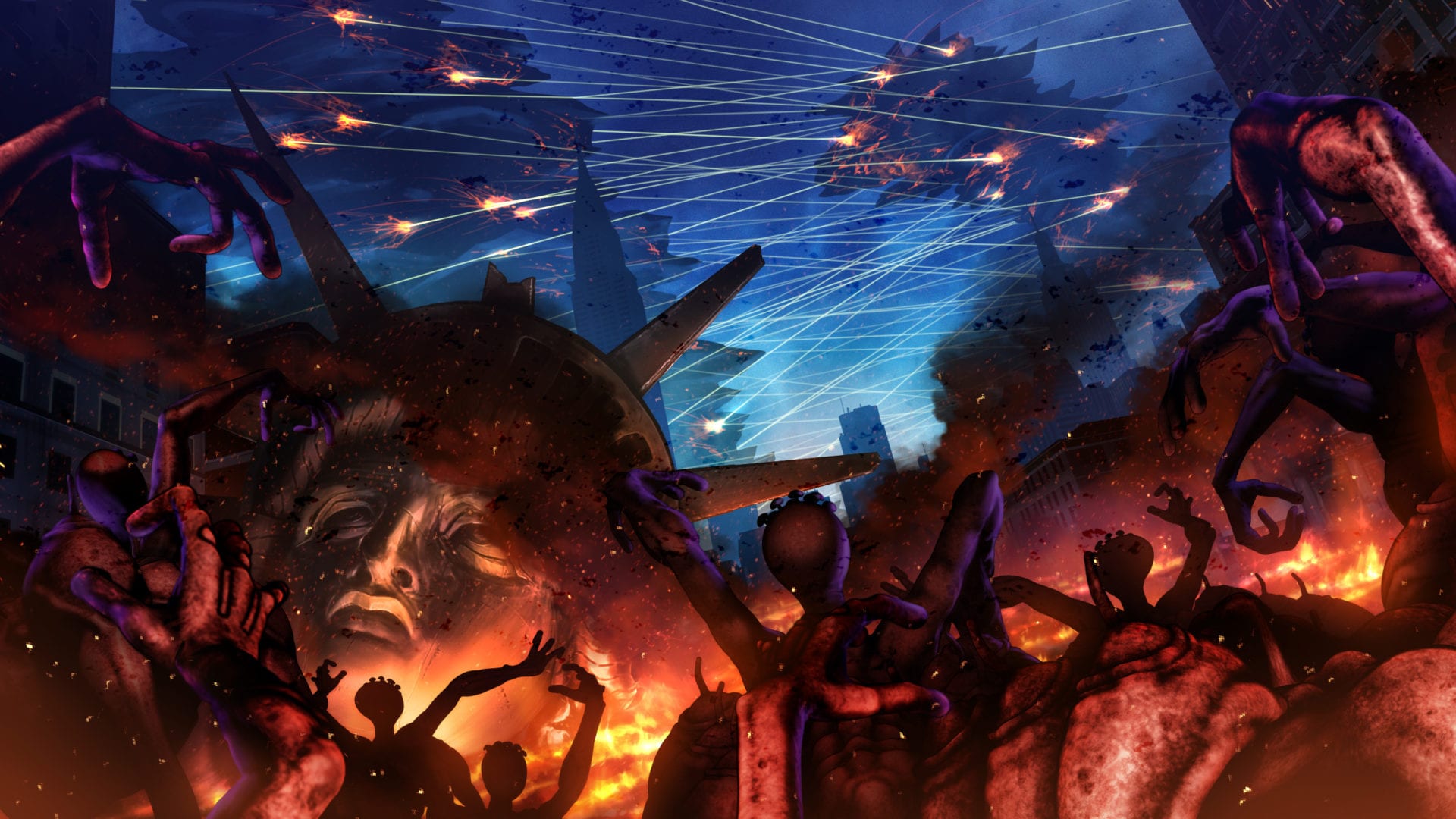 Another strange element mentioned by Yoshimune-san is that the Statue of Liberty is on an island, but here we see that its fallen head has ended up in the streets of New York overrun by Tank-class BETA. What could have caused this?