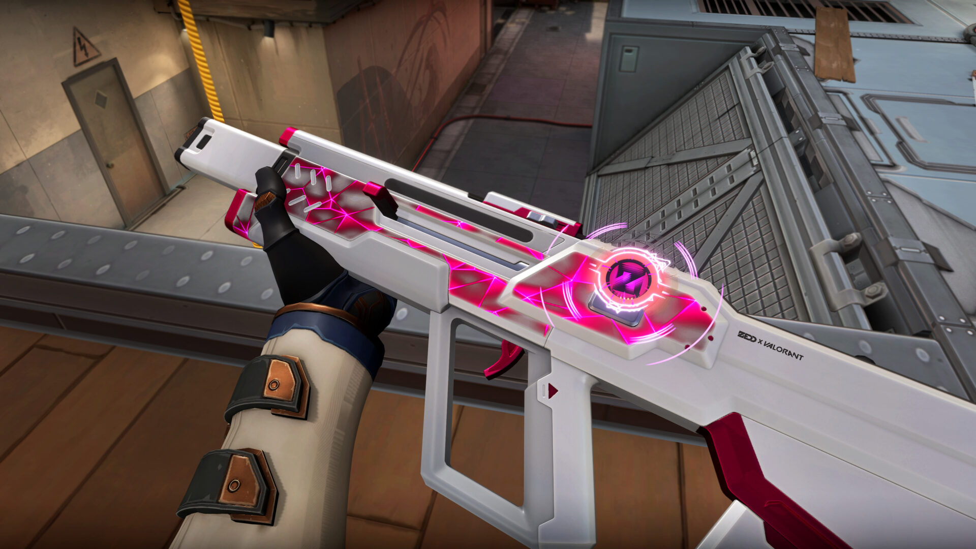 “Zedd was very interested in collaborating with us on a skin line because he’s a huge fan of Valorant. He was playing the game for many months before our team met him, so it was cool that he approached us as a Valorant player, not as Zedd the artist. When we first started talking about ideas, something we established really early on with him was that we wanted to make a skin that would be broadly appealing and awesome whether or not you were familiar with Zedd’s music or brand. This means that players who like sci-fi and sound-heavy skins would love this skin, rather than this just being a skin that only Zedd fans would enjoy.“