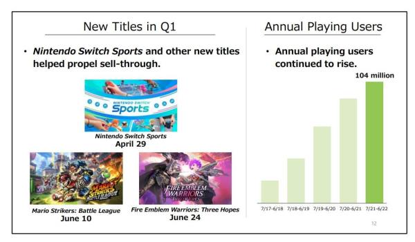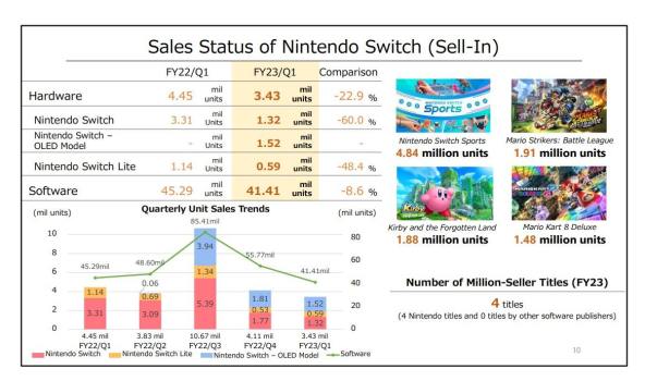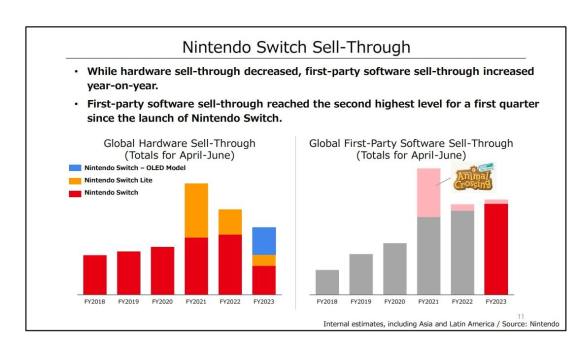 Sell-through to customers of first-party software increased year-on-year, reaching the second-highest level for a first quarter of the fiscal year since the release of the Switch.