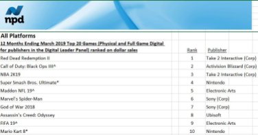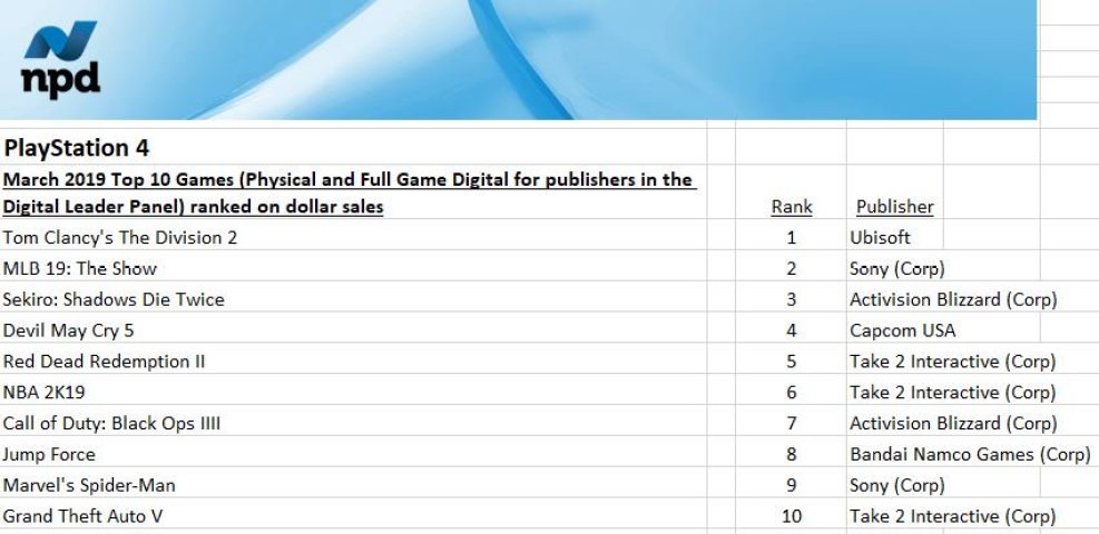 Today the NPD announced its statistics for the video game market in the United States during the month of March.