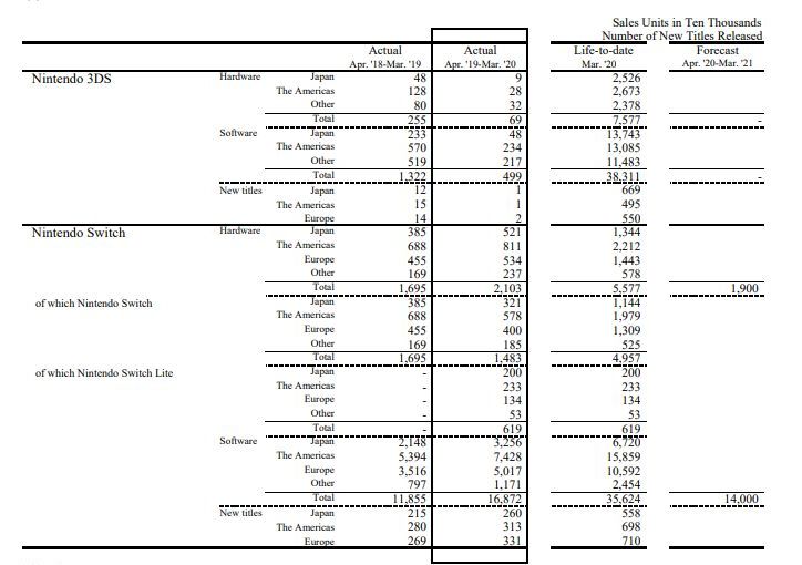 “For the fiscal year ended March 31, 2020, Nintendo Switch Lite launched in September as a compact, lightweight, and easy-to-carry dedicated handheld system, and Nintendo Switch performed very well without losing momentum, resulting in significant sales growth for the entire Nintendo Switch family.