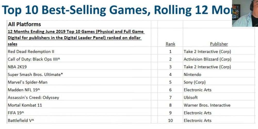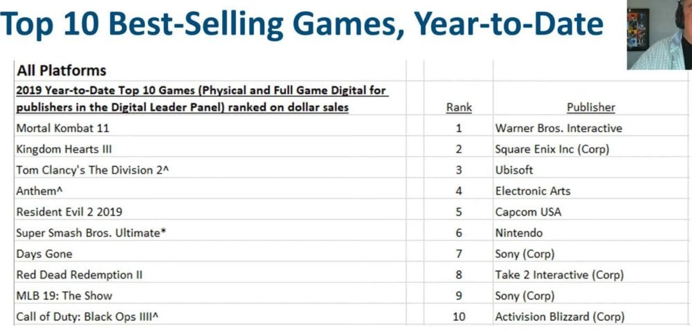 Mortal Kombat 11 remains the best selling game of the first half of the year followed by Kingdom Hearts III. Speaking of the last twelve months, Red Dead Redemption II is holding onto its primacy, followed by Call of Duty: Black Ops 4.