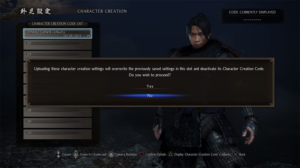 Of course, this also pretty much confirms that NiOh 2 will use a code system to share your created characters online, which is a neat feature.
