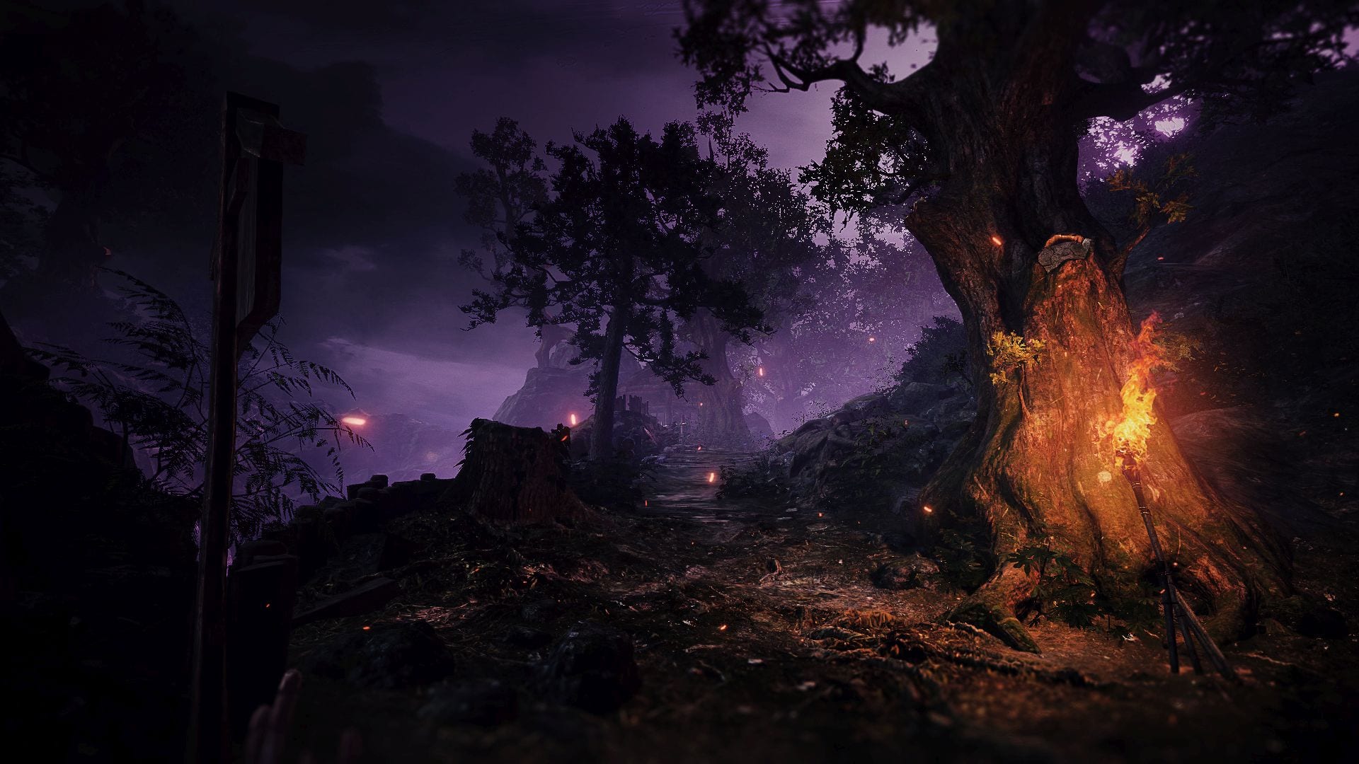The Mountain Holy Site is a shrine dedicated to the god of the volcano, but has been abandoned due to eruptions and is now in ruins. The flowing magma has mostly solidified into hard bedrock at the foot of the mountain, while parts of it are still burning. It’s said that this place resembles hell, and the victims of the eruptions still wander as vengeful spirits.