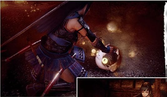 More new systems showcased include the Benevolent Graves in the form of blue blades that let you summon the spirits of other players to fight by your side. We also see Sunekosuri, the cute youkai cat that can recharge your own youkai gauge by following you around.
