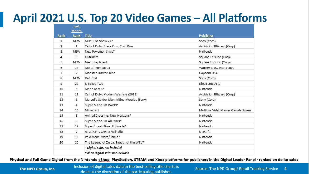 - “Nintendo Switch was the best-selling hardware platform in both units and dollars during the month of April, as well as 2021 year to date.”