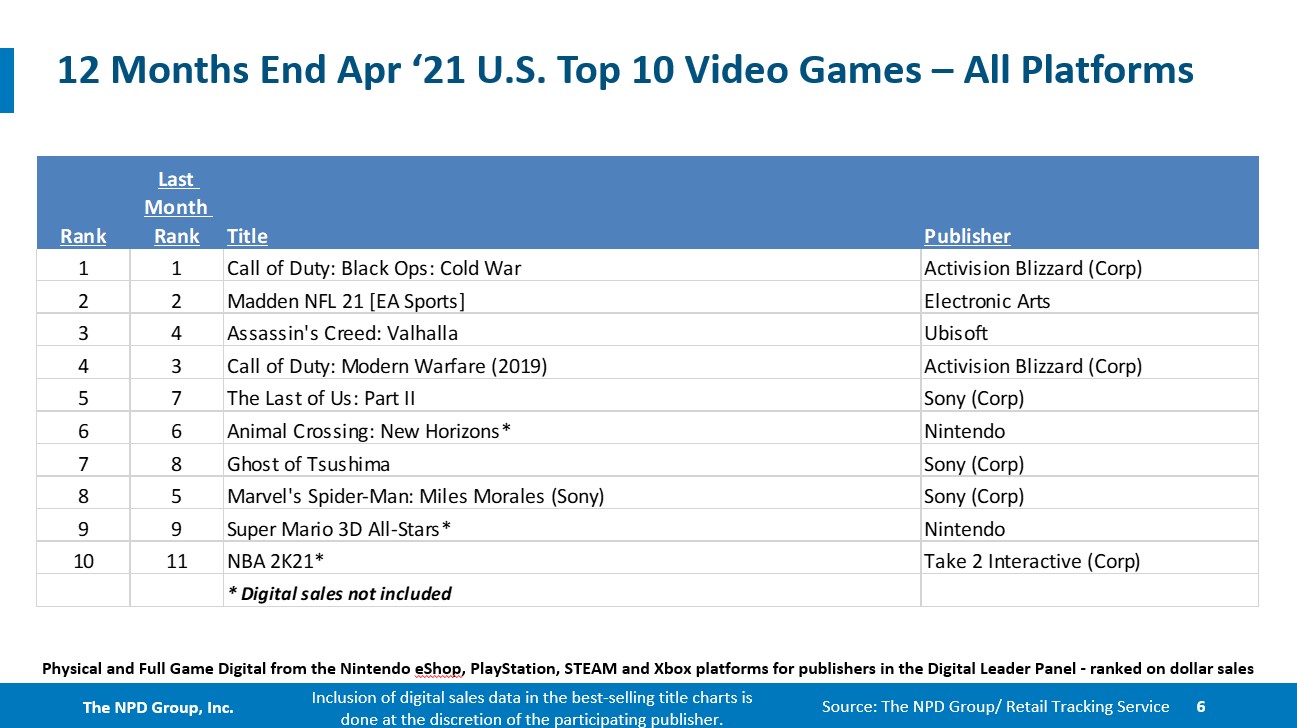 It’s that time again as another report from The NPD Group reveals US video game industry spending habits for April, and the big takeaway is that for the first time in 14 months the overall figure has actually declined — though overall spending over the first four months of the year is still ahead of 2020.