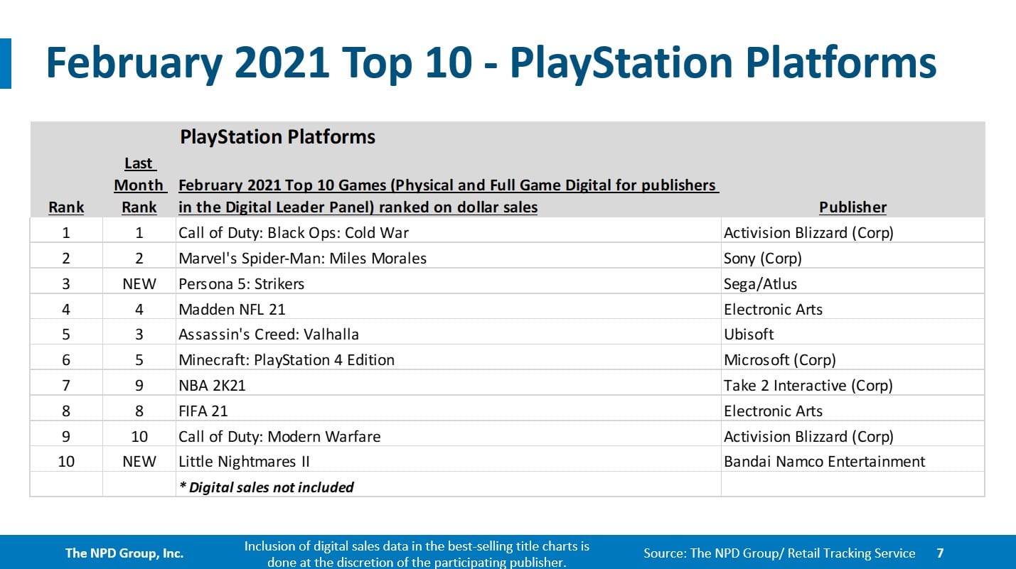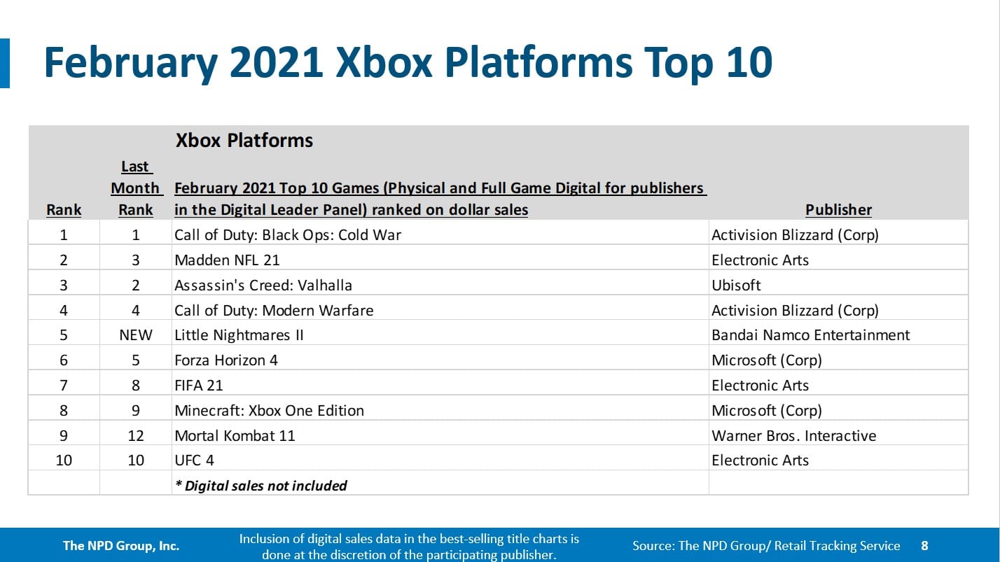 - Little Nighmares II launched as the 6th best-selling game of February. Little Nightmares II ranked as the 5th best-selling game on Xbox platforms, while placing 10th on PlayStation.