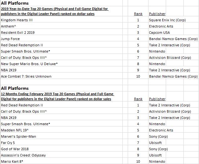 Kingdom Hearts III is still the best-selling game of 2019 so far, with Red Dead Redemption II being at the top for the past twelve months. Incidentally, Kingdom Hearts III remains the fastest-selling game of the franchise across its first two months.