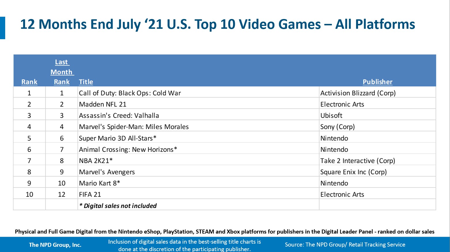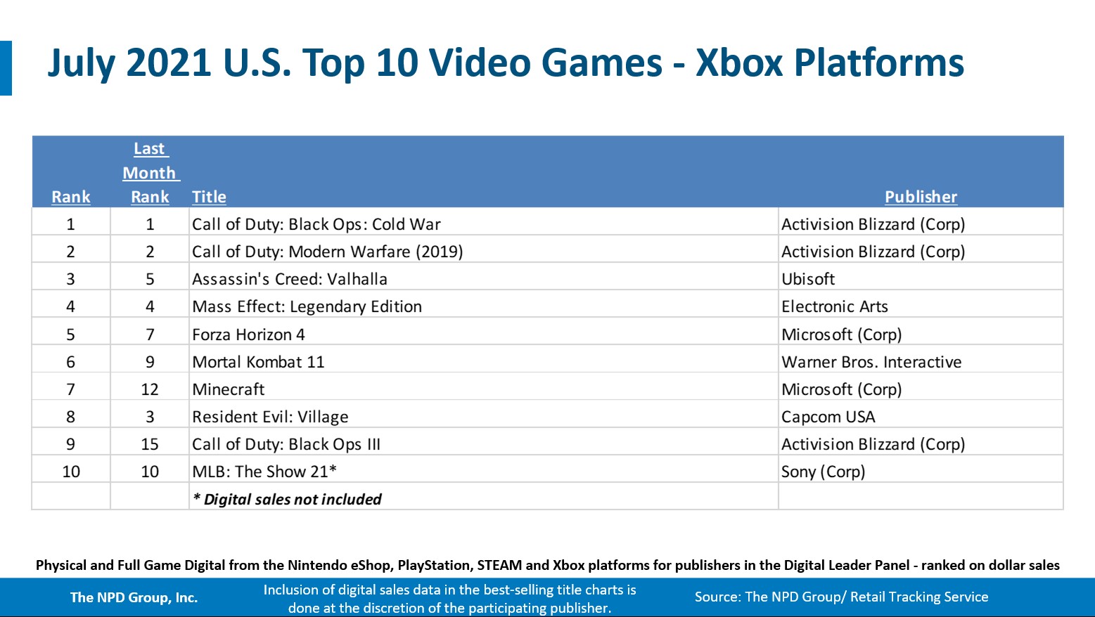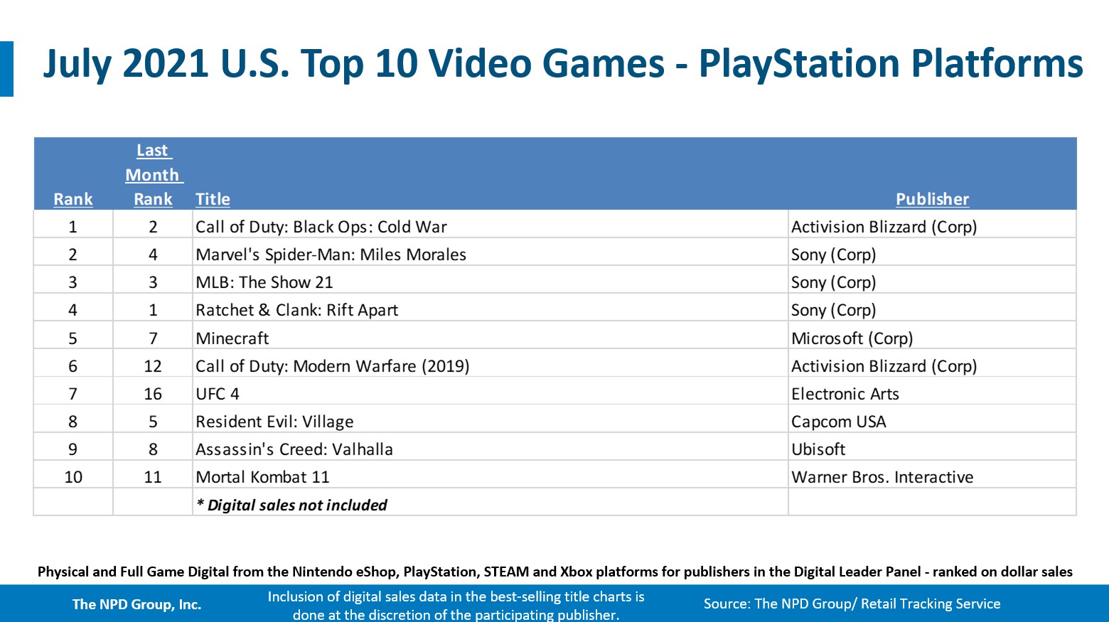 - Call of Duty: Black Ops Cold War ranked as the 2nd best-selling game of the month of July, and remains the best-selling game of 2021 year-to-date. Call of Duty: Black Ops Cold War was the best-selling game of the month on both the PlayStation and Xbox platforms.