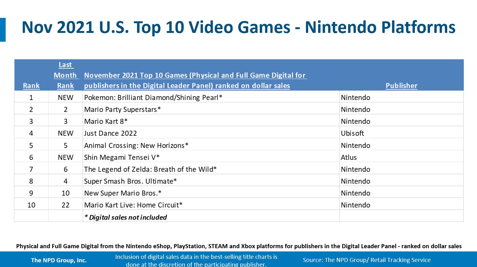 - Switch was the best-selling hardware platform in both units and dollars for both November 2021 as well as 2021 year-to-date.