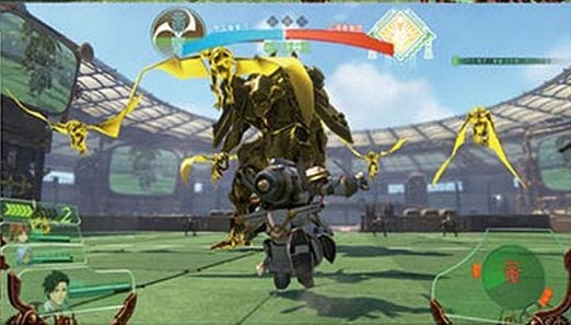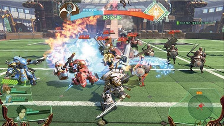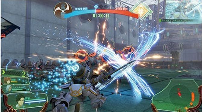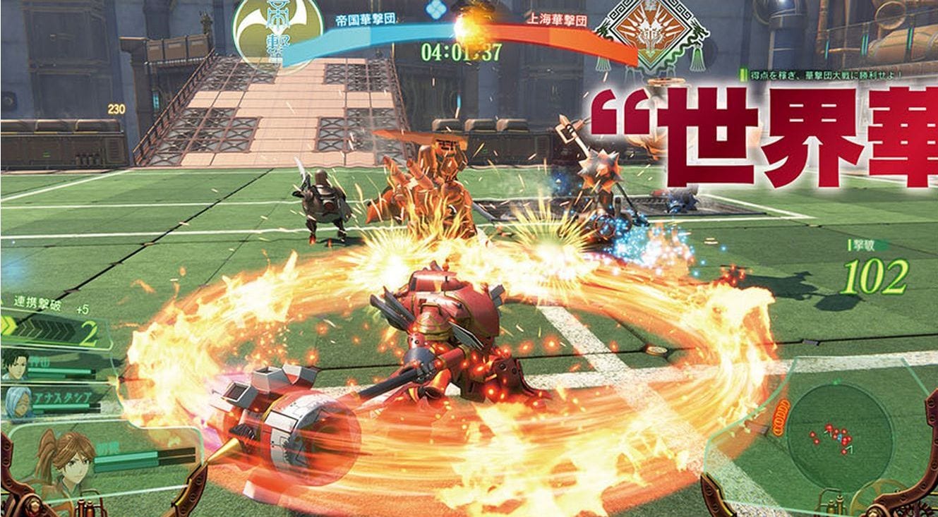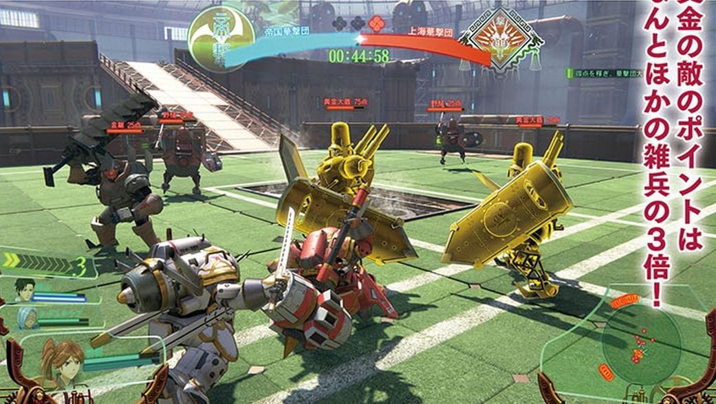 By destroying enemy targets, you can earn points pushing a “tug-of-war” gauge at the top of the screen. The team that wins two rounds wins the match.